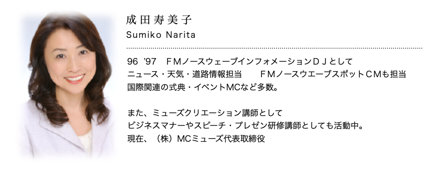 講師スタッフ 株式会社 エデュース 代表取締役 小泉笑美子 詳しくは下記のところへ、メールまたは お電話でお問合せ下さいね(担当:小泉) ▼ TEL011-737-1773 FAX 011-700-3786 info@educe-sapporo.com 〒060-0807 札幌市北区北7条西5丁目6-1 ストークMS札幌5F502 Google Map TEL 011-737-1773 電話する>> メールで問い合わせ>> ホーム 新着情報 講演 接遇研修とビジネスマナー スピーチ&プレゼン研修 新人研修 リーダー研修 コミュニケーション研修 講師スタッフ 小泉笑美子 会社概要 お問い合わせメール